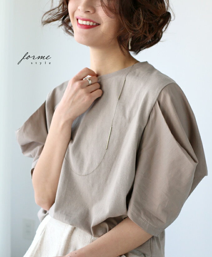 「Tシャツ苦手」を一発解決!アラフォーの垢抜けTシャツ(全4色)スタイルフォルム トップス 袖コン ハリ感 薄手 異素材 シンプル Tシャツ プルオーバー カジュアル レディース 半袖 五分袖 体型カバー 無地 テラコッタ オレンジ モカ ホワイト ブラック ブラウン【S200724】